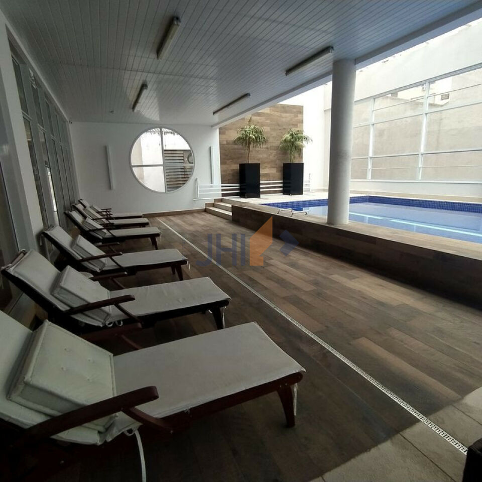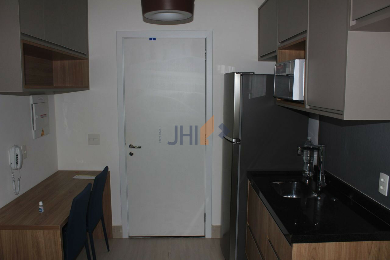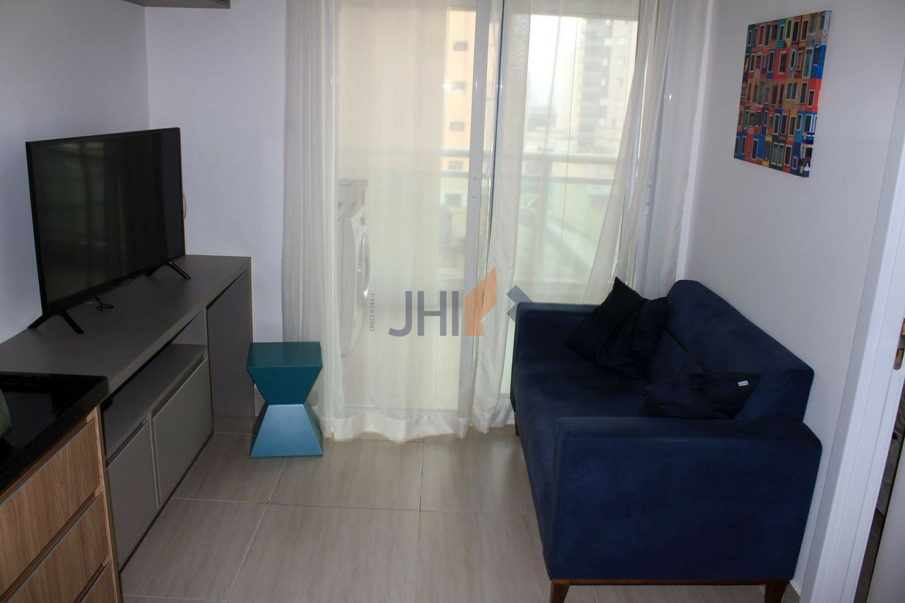 Completamente mobiliado, com um dormitório, uma sala com varanda gourmet, cozinha, banheiro. Condomínio com Lavanderia, jardins, academia, piscina, quadra, salão de jogos, espaço gourmet, churrasqueira,