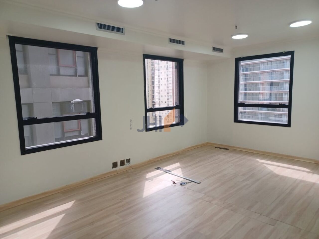 No Edifício Four Seasons, com total infraestrutura pronta para ocupação. Possui luminárias, piso laminado, quatro salas com banheiros mais duas alas e um banheiro individual, porta de vidro de correr, ar condicionado central do conjunto e quatro vagas de garagem. O prédio possui auditório com capacidade para trinta pessoas, refeitório para doze pessoas e cinco banheiros na área comum. Excelente localização, próximo a Estação de trem, shopping, restaurantes, hospitais e comercio em geral.