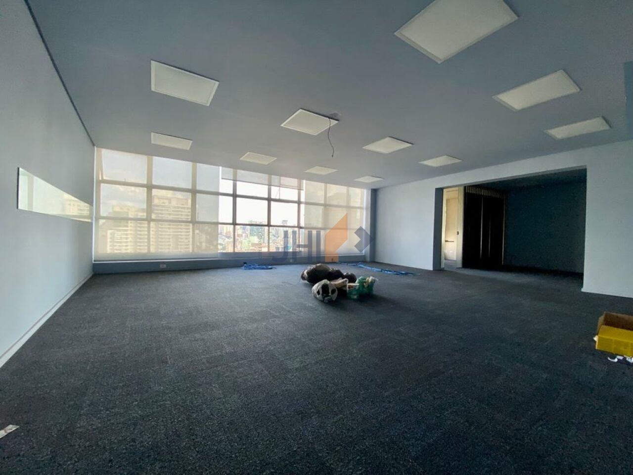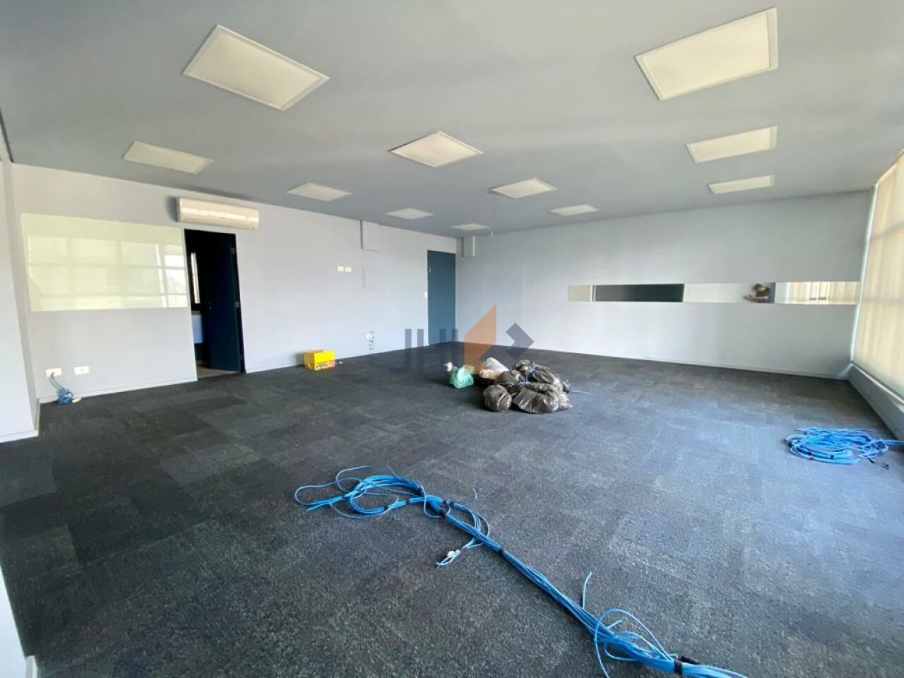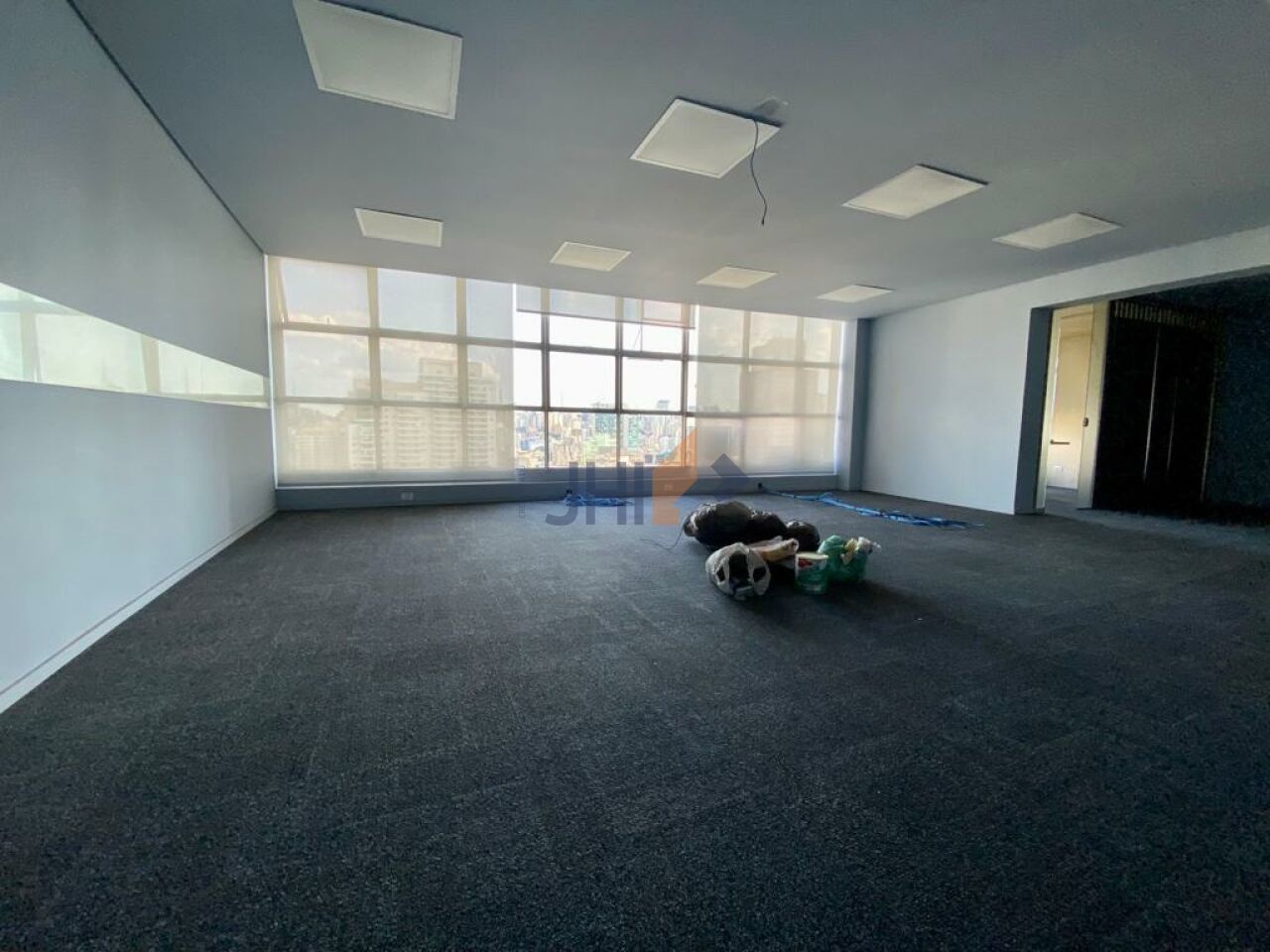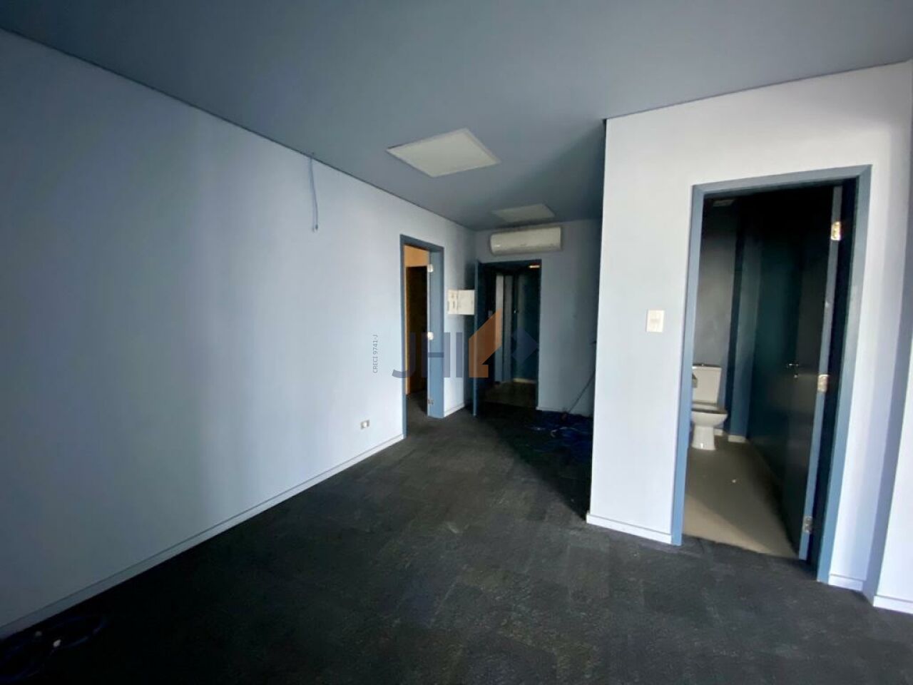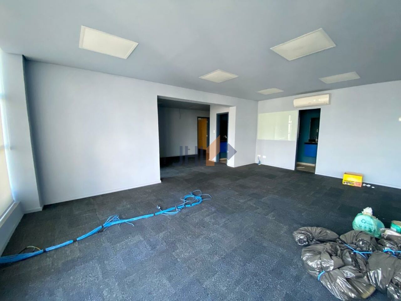 O conjunto comercial possui aproximadamente 120 metros quadrados de área útil e conta com ampla sala principal, duas salas menores, copa/cozinha e três banheiros.