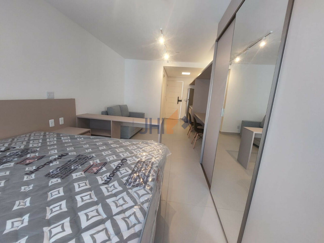 Studio arejado, ensolarado e totalmente mobiliado, pronto para morar. O espaço conta com sala equipada com sofá, bancada, cadeiras e TV de 55?, dormitório com armários planejados, cama box com colchão e porta-balcão com cortina tipo painel.