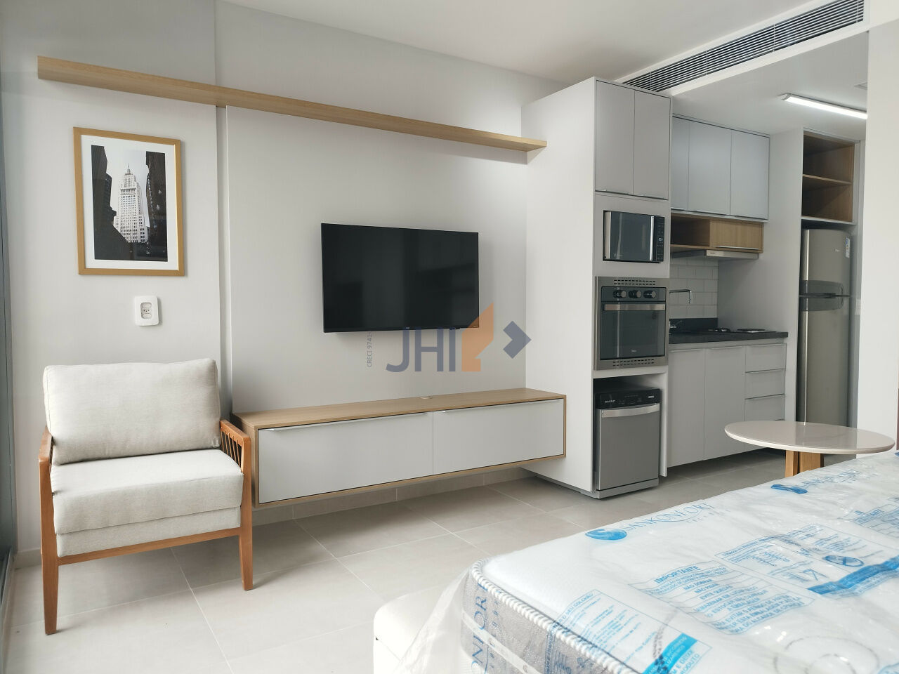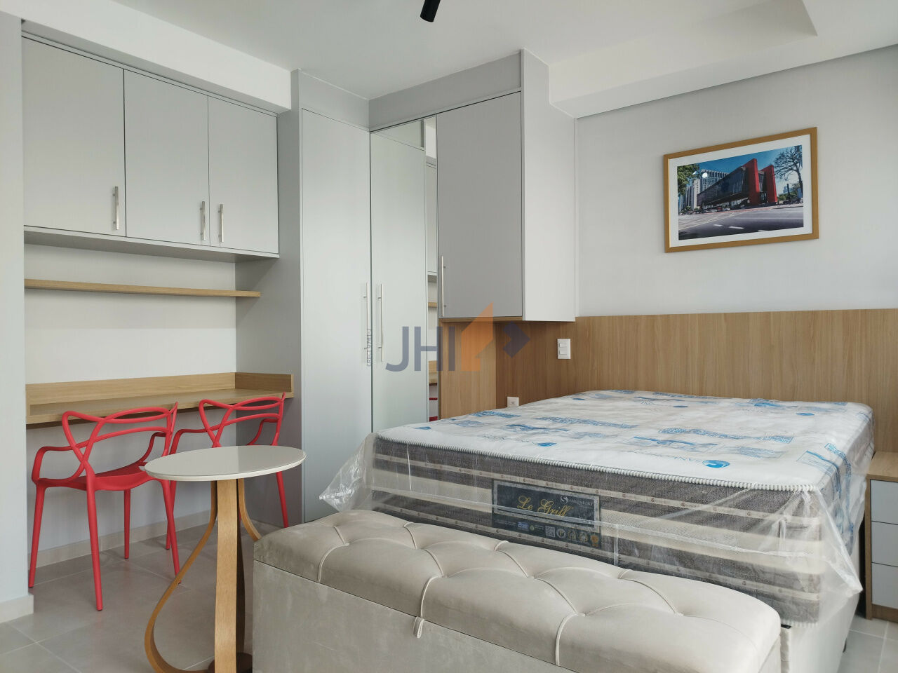 Novo, moderno, totalmente mobiliado e equipado. Iluminação natural.