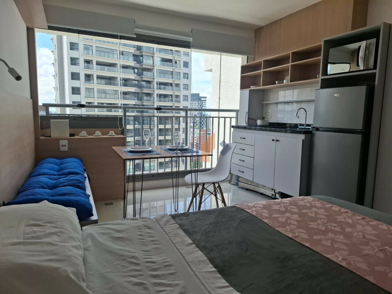 Localização excelente, próximo à Estação Vila Madalena, do metrô. Primeira locação. Ar condicionado quente e frio, varanda fechada com vidro, piso em porcelanato, TV 43". Condomínio com jardim, academia, piscina com raia, climatizada, churrasqueira, forno a lenha, salão de festas, coworking, lavanderia, mini mercado, portaria 24 horas.