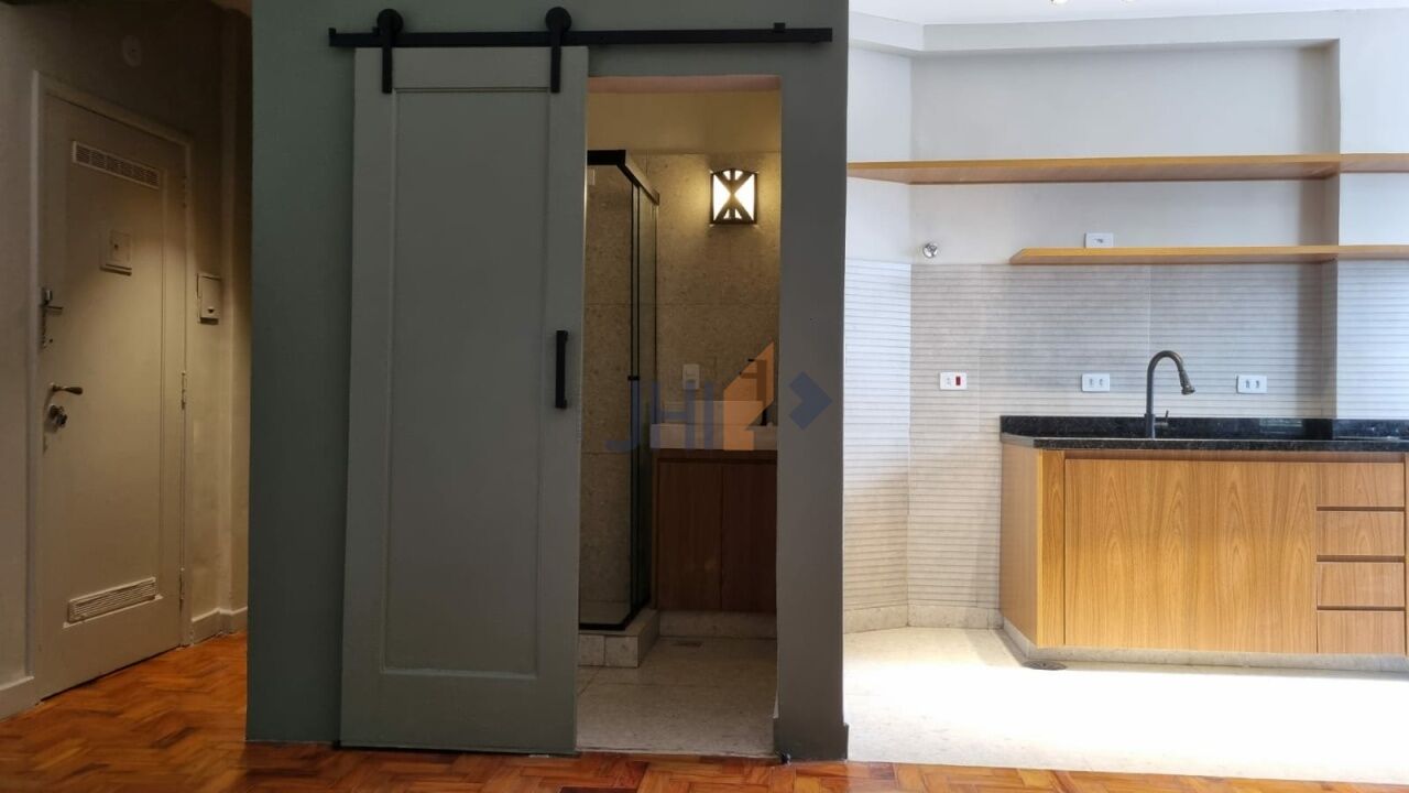 Contendo hall, quarto/sala, cozinha integrada a sala, com cooktop e armários, área de serviços e banheiro. Este lindo projeto arquitetônico, recém terminado, num prédio antigo que exala charme e personalidade.